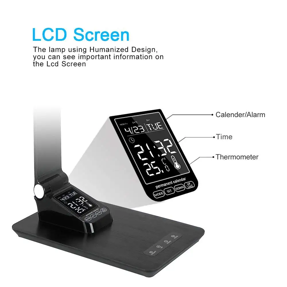 buy LED Desk Lamp Foldable Dimmable Touch Table With Calendar Time